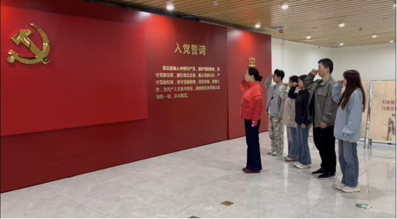 参观结束后,全体同学在党旗下庄严宣誓,重温入党誓词。“我志愿加入中国共产党……随时准备为党和人民牺牲一切,永不叛党。”铿锵有力的誓言,表达了同学们对党的忠诚和为共产主义事业奋斗终身的决心。