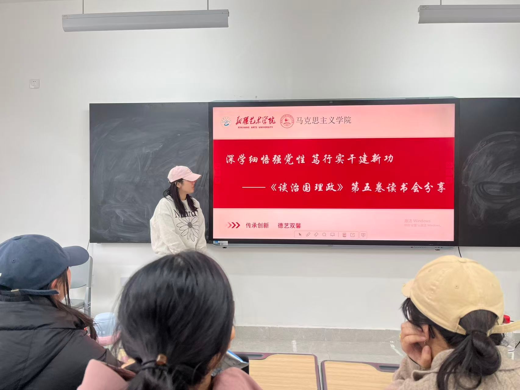 为深入学习贯彻习近平新时代中国特色社会主义思想,强化党性修养、筑牢思想根基,将理论学习成果转化为干事创业的实际行动,2025年12月24日,马克思主义学院2025级研究生班成功举办“深学细悟强党性,笃行实干建新功”读《习近平谈治国理政》第五卷读书会。主讲人刘晓琳在交流读书感悟后并与全体2025级研究生班人员共同交流学习心得。