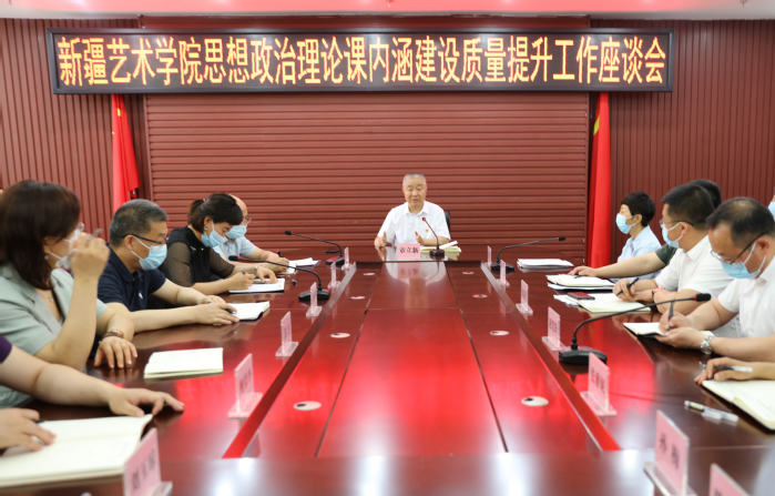 章立新书记回顾分析了近年来党中央和自治区党委关于高校思想政治工作和思想政治理论课建设的总体部署安排并紧密结合我校实际围绕内涵建设、质量提升工作对我校思想政治理论课建设进行了深入分析、作出全面安排部署并提出宝贵意见:一是思想政治理论课教师要对马克思主义理论、习近平新时代中国特色社会主义思想做到真学、真懂、真信、真用;二是思想政治理论课教育教学过程要紧密结合现实问题,以学生学习、生活、择业、成长过程中遇到的实际问题为切入点,增强思想政治理论课的针对性、时效性;三是要继续推进思想政治理论课改革,在教学内容上推动“思政+艺术”深度融合,在教学形式上促进“思政+互联网”紧密结合;四是要充分发挥思想政治理论课专兼职教师队伍带头作用,引领、指导、助力学校的课程思政建设;五是要深入开展大中小学思政课一体化建设,学校作为基地院校要带头深入基层、调研考察,积极推进工作;六是加强思想政治理论课教师队伍建设和能力水平提升。