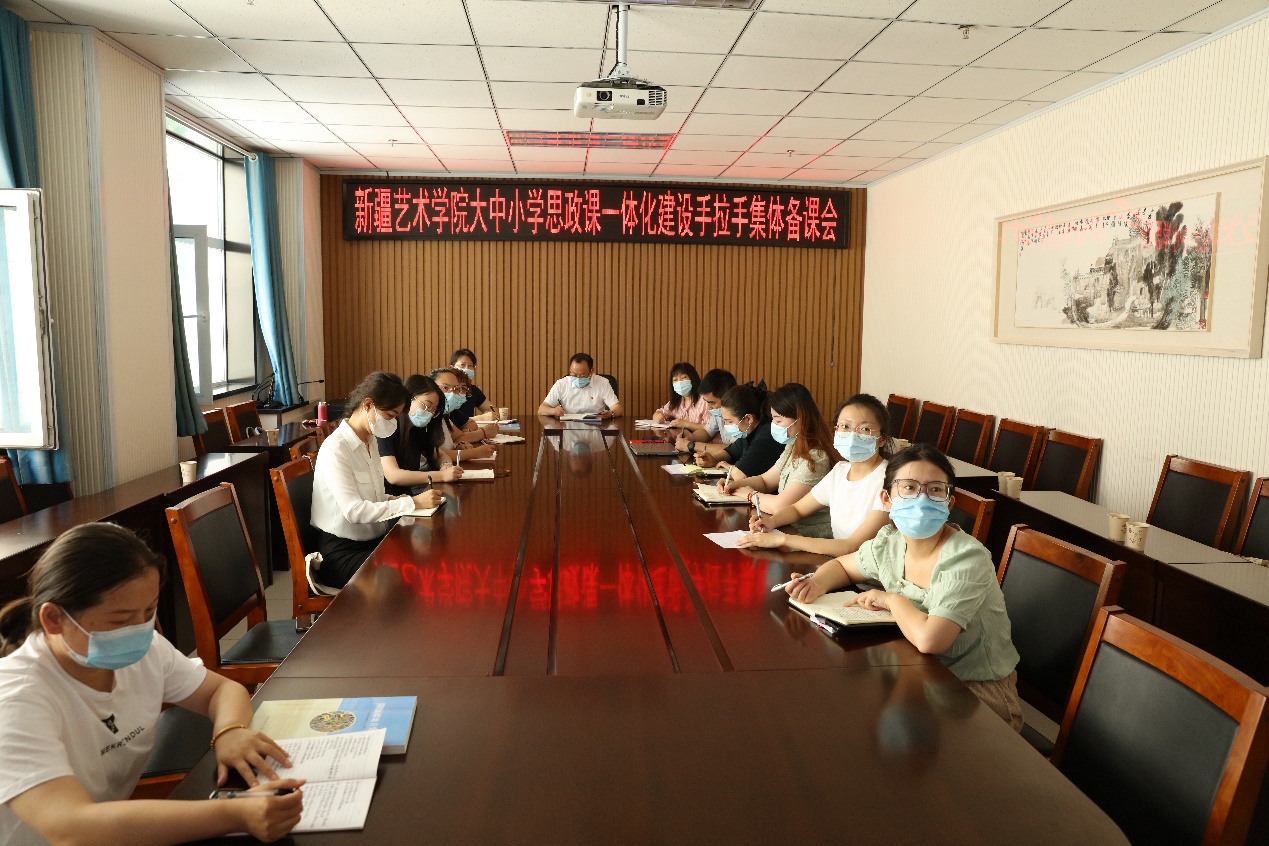 为推动新疆艺术学院马克思主义学院与两所高职院校的马克思主义学院及乌市、克州地区中小学间的思政课教学交流合作,统筹推进大中小学思政课一体化建设,推动思政课建设内涵式发展,6月22日新疆艺术学院马克思主义学院举办“新疆艺术学院大中小学思政课一体化建设手拉手集体备课会”。本次集体备课会邀请了新疆大学历史学院党委副书记、院长孟楠教授为参加集体备课会的新疆建设职业技术学院马克思主义学院、克州职业技术学院马克思主义学院、克州二中和乌鲁木齐教育研究中心的200余位思政课教师作了题为《大中华视野下的新疆地方史》的专题辅导讲座。本次集体备课会采取线上线下相结合方式进行,学校教务处、科研处和研究生处的老师们也一同参加了学习。马克思主义学院副院长赵党锋主持了本次集体备课会。