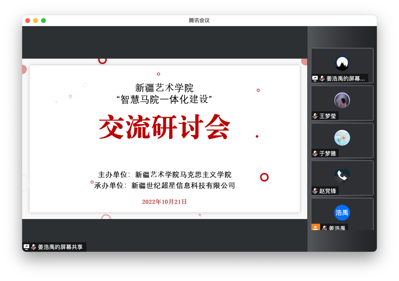 超星公司项目经理谢鹏程基于信息技术与思政育人融合,作新疆艺术学院“智慧马院一体化建设”的主题报告。他从政策、理论和时代背景出发,介绍了超星近年来为推动思政课改革创新所做的系列工作,着重讲述了超星智慧马院基于海量思政资源、人工智能技术、大数据技术,立体化打造备课资源库、教学辅助系统、无纸化考试系统、实践教学系统、教师研修管理系统五大模块,满足教学互动、考试评价、实践教学、教师发展、集体备课及各高校马院个性化应用场景需求,构建1+5+N的整体解决方案。