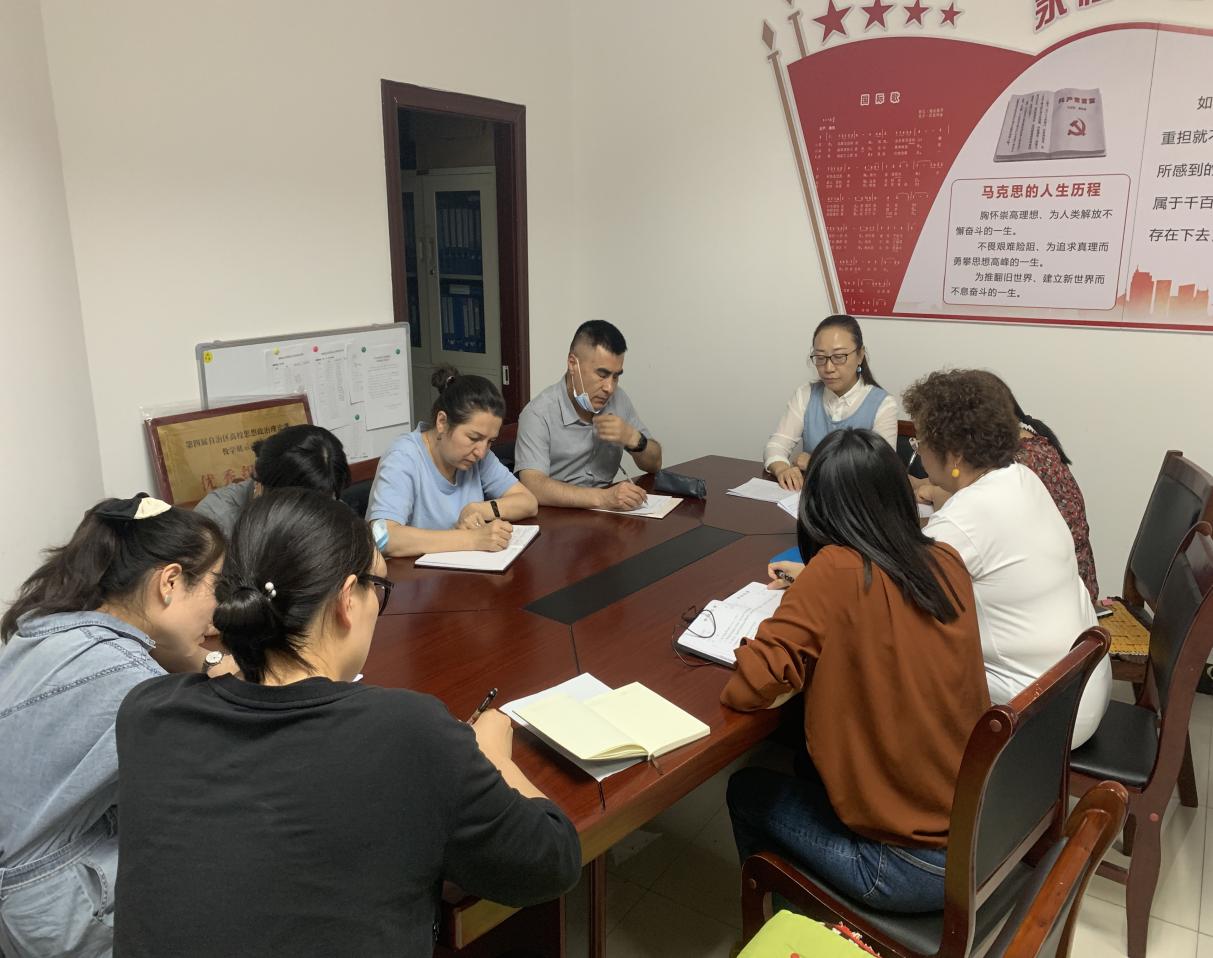古哈尔班以深入学习第三次中央新疆工作座谈会精神——凝心聚力努力建设新时代中国特色社会主义新疆为核心展开党课讲解。重点讲述过去几年新疆在经济发展、人民生活、脱贫攻坚、对口援疆等方面取得的重大成就,极大地激发了马院教师的民族自豪感和民族自信心。