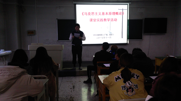 按照本学期教学计划的安排,2017年12月2日下午,马克思主义学院《马克思主义基本原理概论》课教研室围绕着“珍爱民族团结,反对民族分裂”这一主题,组织开展了2016级广编、摄影专业大学生的发声亮剑活动。2016级广编、摄影专业的全体同学都参加了此次实践教学活动。按照每位同学发言控制在5分钟以内的标准,班级推选出的16名同学进行了课堂集中发声亮剑。在发声亮剑过程中,每一位同学都高亢激昂、铿锵有力地喊出了自己坚决拥护民族团结,反对民族分裂,誓与境内外“三股势力”斗争到底的誓言。整场课堂实践教学活动气氛热烈,在场的每一位同学都被深深触动。